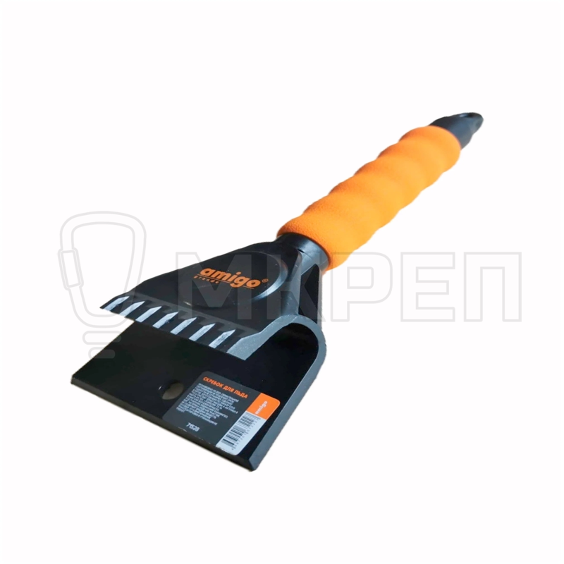 Скребок для удаления льда AMIGO имеет прочный корпус из морозоустойчивого ударопрочного пластика. Грубый скребок для удаления толстого льда. Удобная мягкая рукоятка для комфортной работы в морозную погоду.