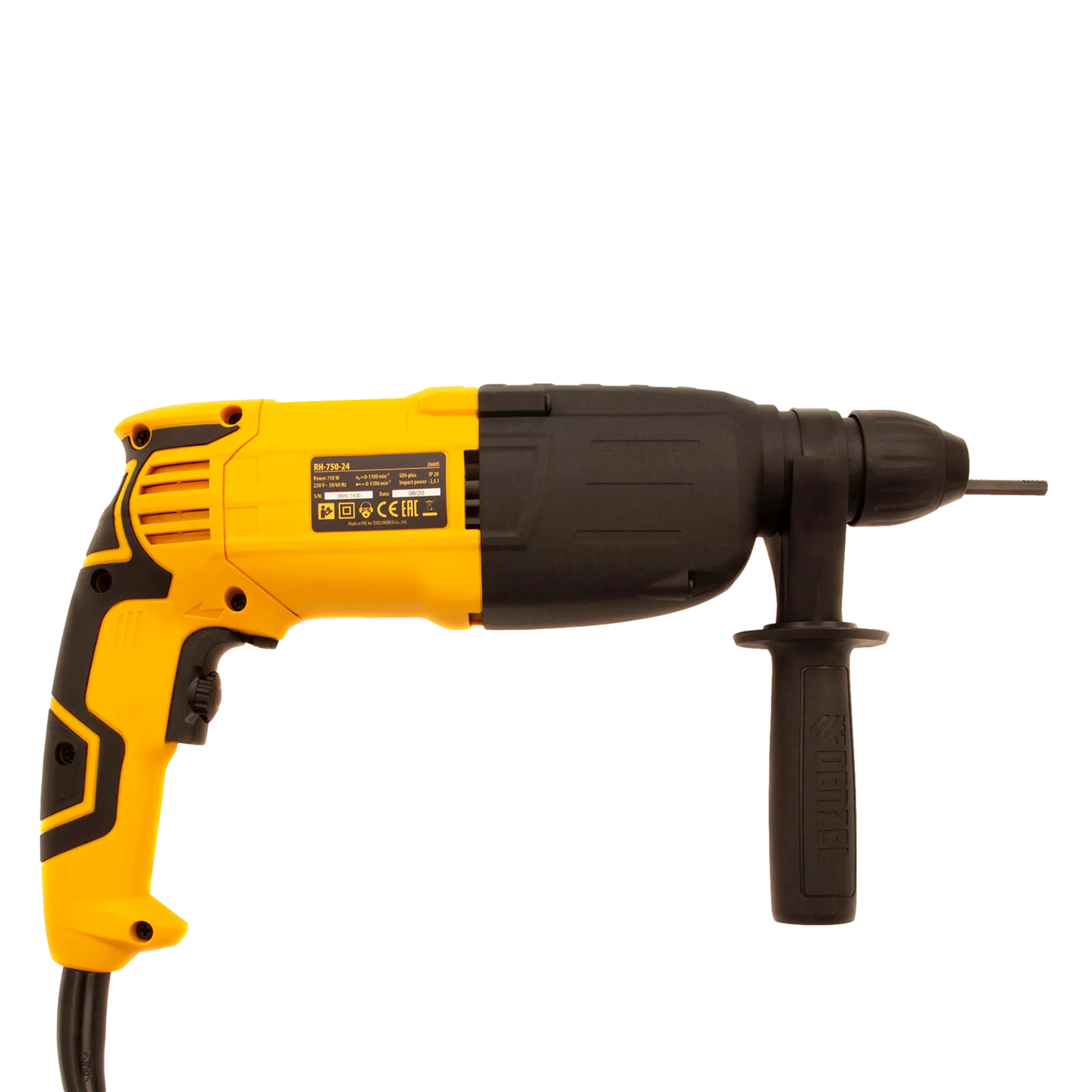 Электрический перфоратор DENZEL RH-750-24 используется при ремонтных и строительных работах для решения задач, требующих сверления или бурения отверстий в любых материалах.Патрон SDS-plus. Обеспечивает надежную фиксацию бура и делает быстрой замену оснастки.Предохранительная муфта. Обеспечивает защиту оператора во время заклинивания оснастки.Оснастка в комплекте. Начните работу сразу – в кейсе вы найдете пику, долото и три бура, чтобы испытать перфоратор по полной.