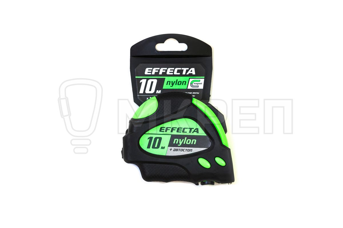 Рулетка Effecta Nylon - профессиональная рулетка с автостопом и нейлоновым покрытием ленты. cнабжена усиленным корпусом и возвратным механизмом. Усиленный зацеп с мощным магнитом.