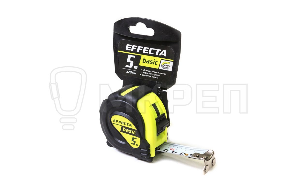 Рулетка Effecta Basic - профессиональная рулетка с усиленным зацепом c магнитом и резиновым кожухом смягчающим удар при случайном падении рулетки.