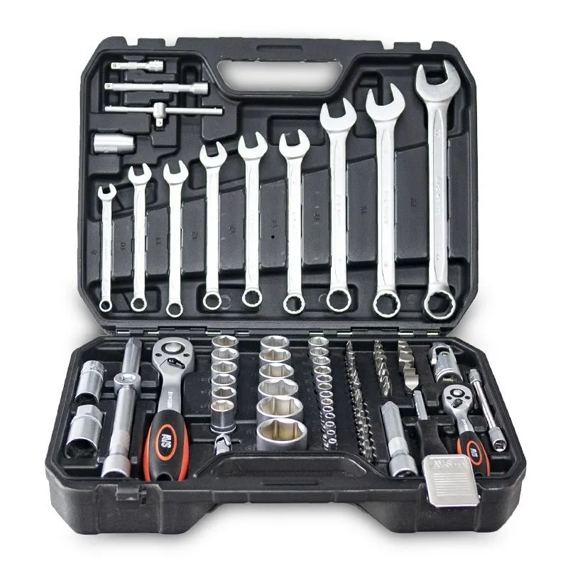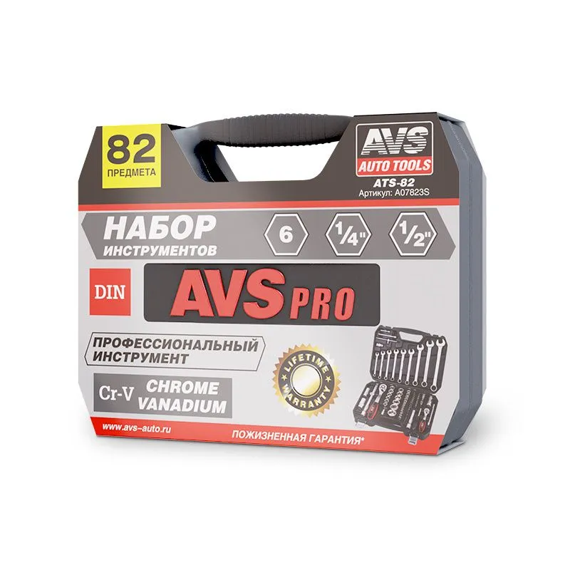 Набор инструмента AVS 82 предмета включает в себя большое количество различной оснастки для работы с крепежом.