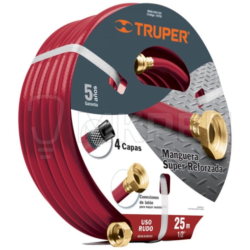Шланг четырехслойный MAN-25X1/2X Truper 19793 используется для полива растений на садовом участке. Выполнен из качественных материалов, имеет длительный срок эксплуатации. В комплекте идет латунный коннектор для удобного присоединения к водопроводному крану. Рабочее давление - 24 кг/см2.