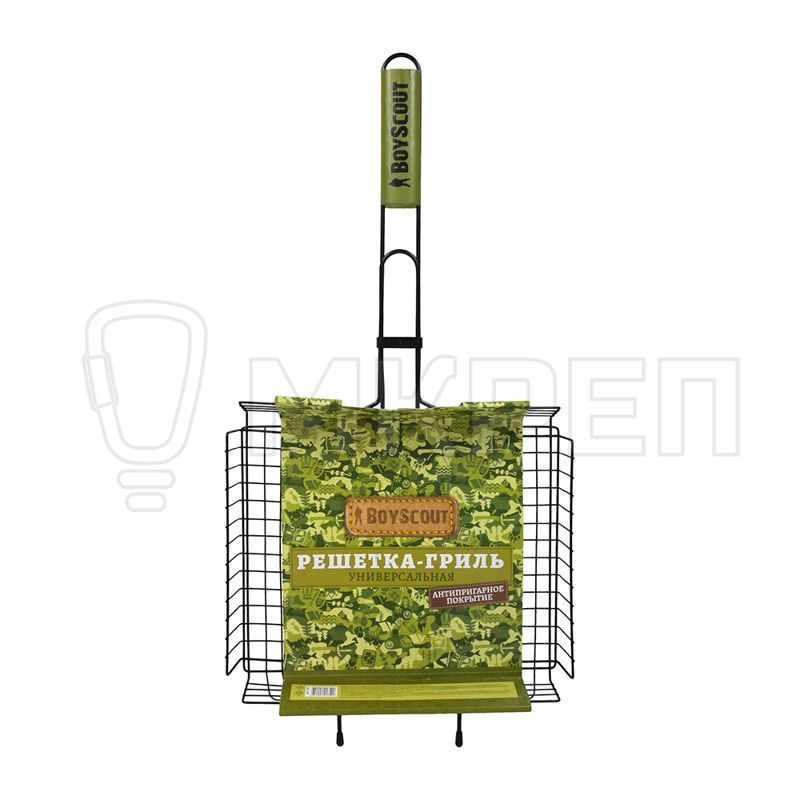 Размер 57(+5)x30x25x5,5 cм Жарочная поверхность 30*25*5,5 см Предназначена для приготовления мяса, рыбы, курицы, овощей на открытом огне. Выполнена из высококачественной стали с антипригарным покрытием, дополнена деревянной ручкой с фиксирующим кольцом для надежной фиксации верхней створки решетки. Размер рабочей поверхности 30х25 см. Усики-фиксаторы позволяют устойчиво закрепить решетку на мангале.