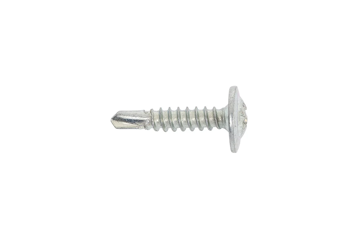 Саморезы для листовых пластин, наконечник-сверло представляют собой оснастку с частым шагом резьбы для фиксации листового металла на деревянном или металлическом каркасе. При толщине металлических элементов до 2 мм монтаж осуществляется без предварительного сверления отверстия. Метиз оснащен пресс-шайбой, полусферической головкой и наконечником в форме сверла.