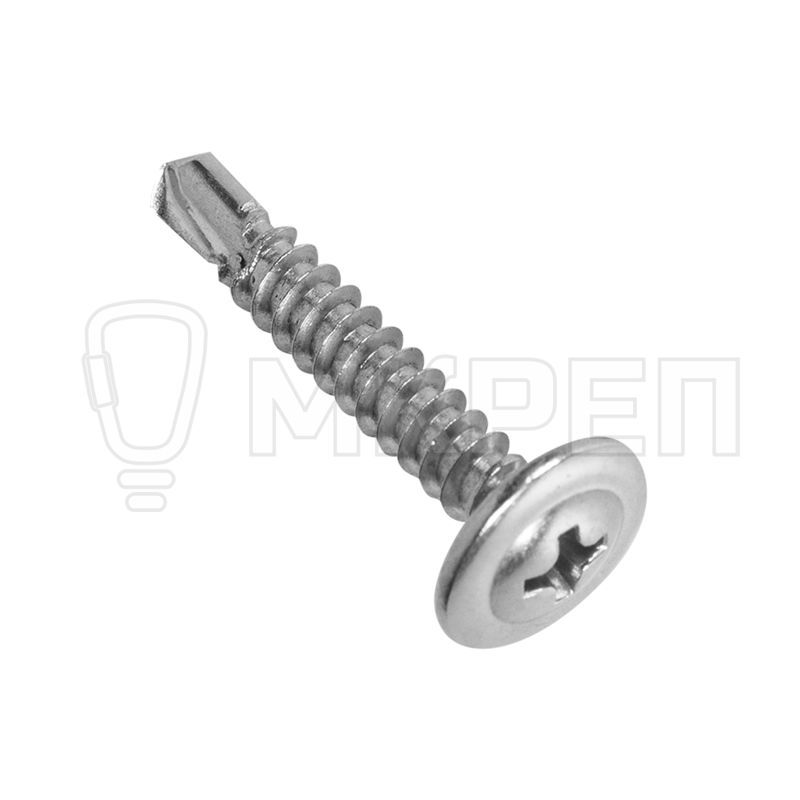 Саморез с прессшайбой используется для крепления листового металла. Оснащен плоской и широкой головкой, что обеспечивает надежное прикрепление листов из тонкой стали к каркасу или основанию, которое может быть собрано из разных материалов — деревянных или пластиковых элементов, стальных тонкостенных профилей. Наконечник имеет форму бура, это намного облегчает монтаж крепежа с помощью электроинструмента (шуруповерта).