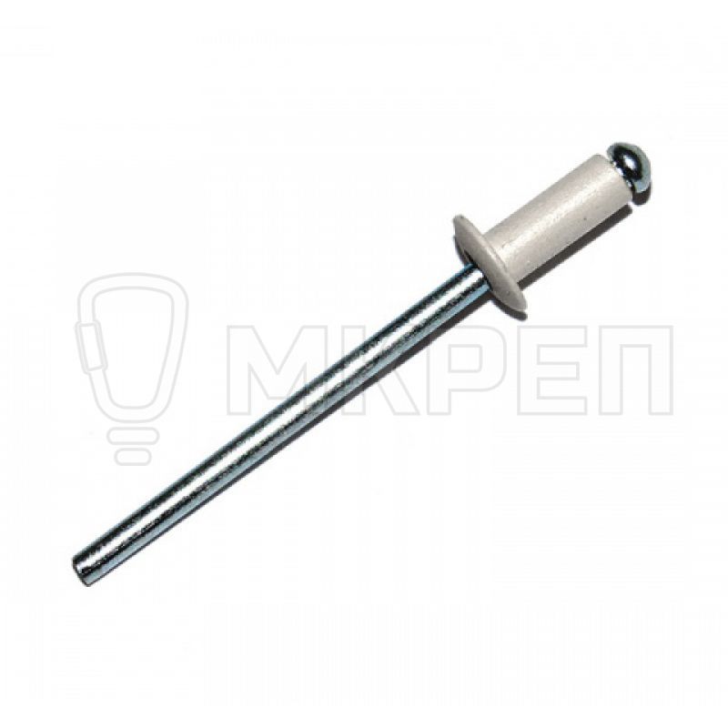 Материал: рубашка данной заклепки изготовлена из алюминия, которому присущи легкость и коррозийная стойкость. Вытяжная часть, в свою очередь — из стали, основными преимуществами которой можно считать твердость и прочность. Шляпка имеет цвет слоновой кости.