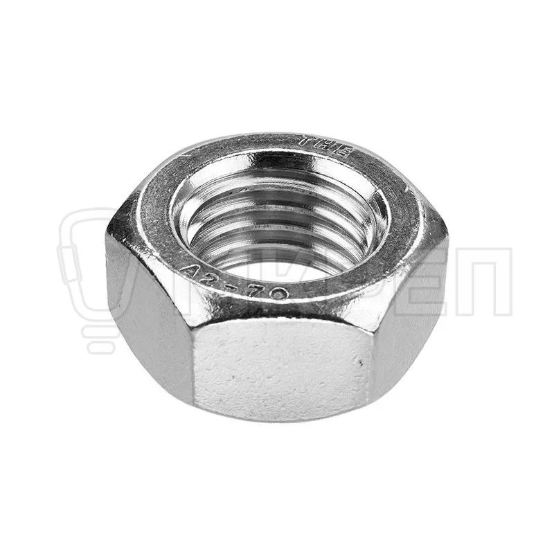 Гайка нержавеющая DIN 934 — самое простое, надежное и недорогое по цене крепёжное изделие из стали правильной шестигранной формы, изготовленное под гаечный ключ. Применяется в основном в строительстве, машиностроении и прочих промышленных сферах совместно с болтами, винтами либо шпильками для соединения различных деталей металлоконструкций и узлов. При этом поверхность метиза максимально устойчива к влиянию агрессивных химических веществ. Изготовлена из нержавеющей стали А2.