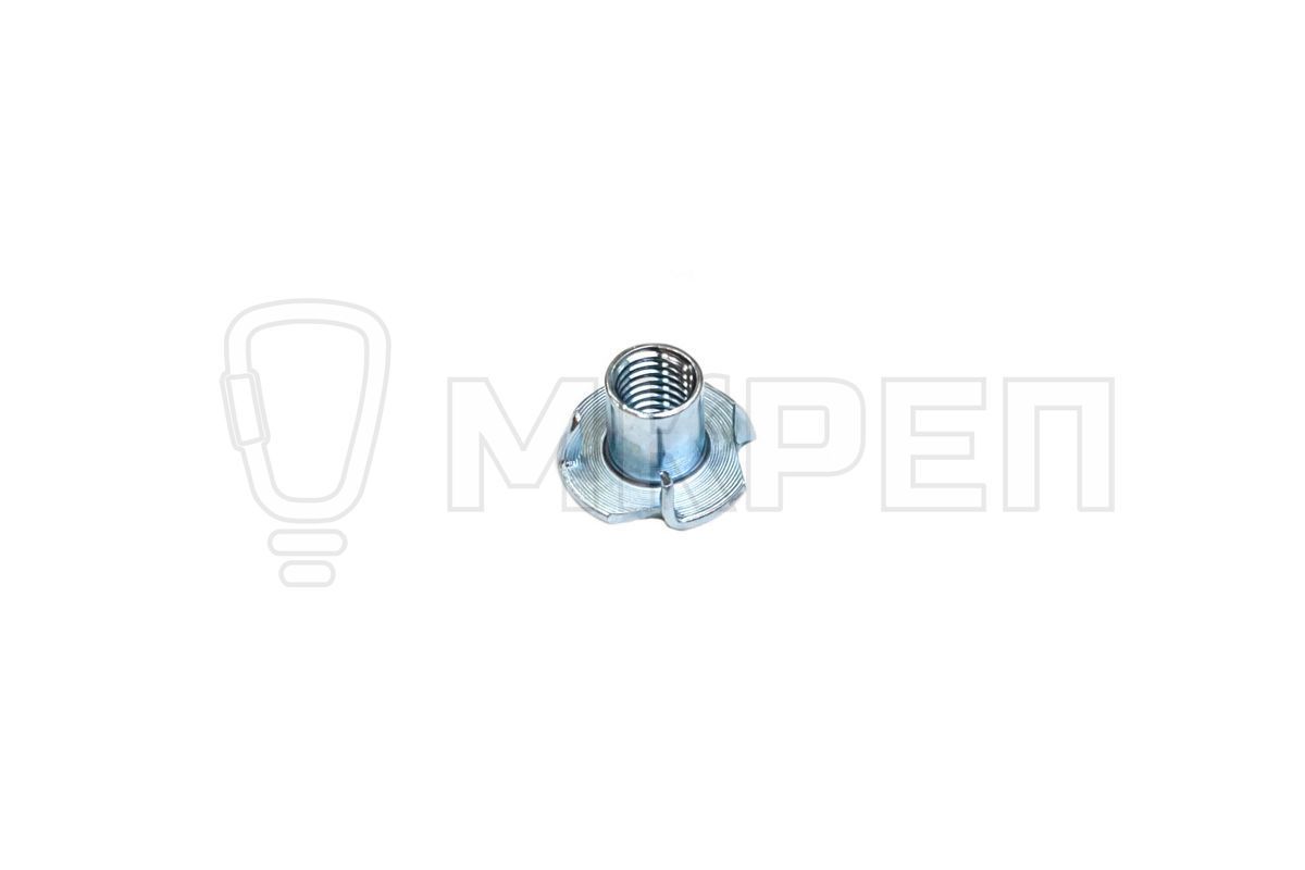Гайка усовая DIN 1624 — гайка забивная мебельная, с метрической резьбой. Выполнена в виде цилиндра с внутренней резьбой, снизу цилиндра располагается шляпка с широким полем из которого вырезаны четыре усика (шипа).