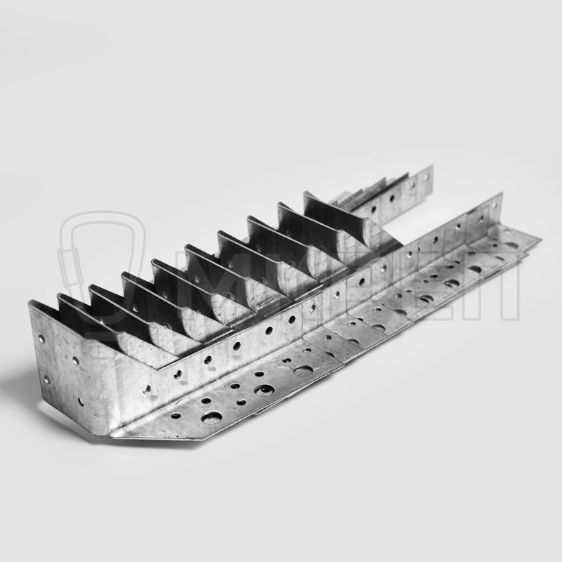 Опора бруса раскрытая предназначена для крепления бруса к различным основаниям (деревянным, бетонным, кирпичным). Она изготовлена из оцинкованной стали, что обеспечивает конструкции защиту от коррозии. Имеет отверстия под саморезы, гвозди, болты. Благодаря ее участию конструкции из бруса обладают сверхвысокими несущими характеристиками.