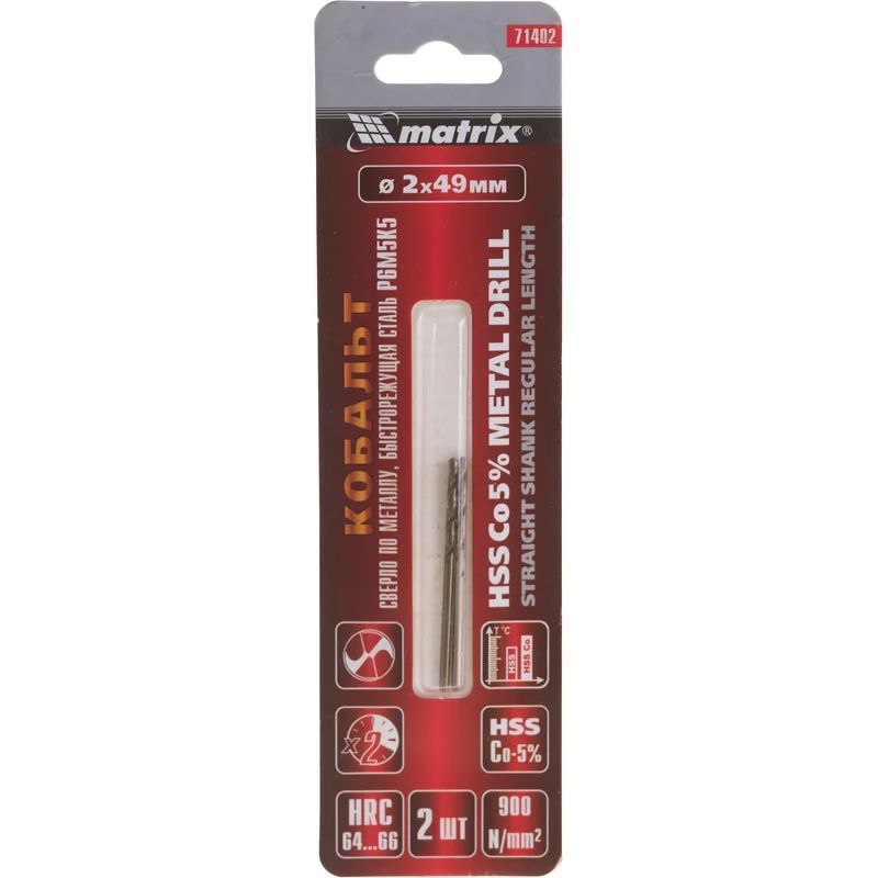 Сверло Matrix 71402 диаметром 2 мм, из стали HSS Co-5%, 2 шт. в комплекте, имеет угол заточки 135 градусов, оптимальный для сверления легированных и цветных металлов. Подходит для профессионального использования на строительной площадке.