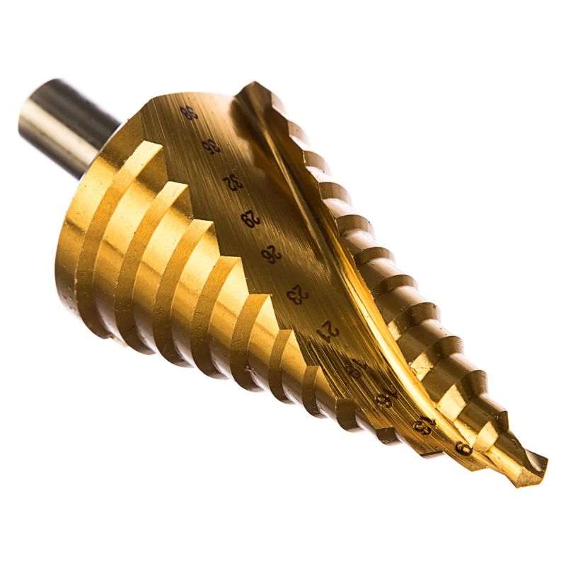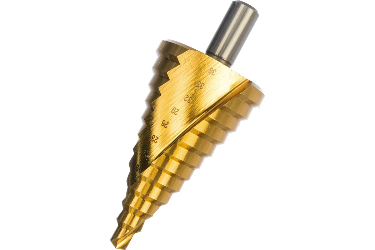 Ступенчатые сверла предназначены для сверления отверстий разных диаметров в листовых и тонкостенных (до 4 мм) изделиях из стали, цветных металлов, нержавеющей стали и пластика. Каждый следующий размер имеет плавный переход в виде ступеньки, что позволяет получать аккуратное отверстие нужного диаметра.