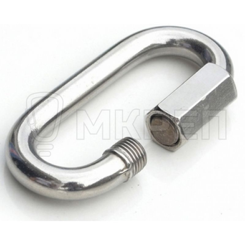 Карабин винтовой используется при такелажных работах для удлинения цепей, присоединения к стальным тросам и канатам, цепям и веревкам. Замыкание карабина происходит благодаря муфте с резьбой.