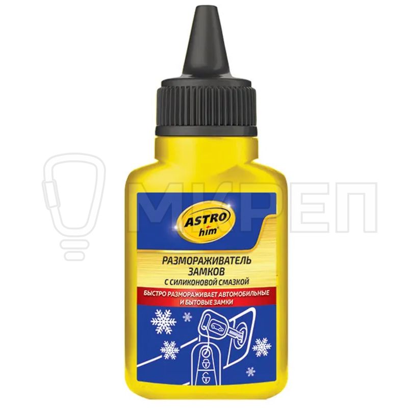 Размораживатель замков с силиконовой смазкой, 40 мл Легко и быстро размораживает даже сильно обледеневшие механические соединения, личинки замков (бытовых замков, дверей, багажника) и другие подвижные соединения, которые эксплуатируются при отрицательных температурах. Имеет высокую размораживающую и проникающую способность. Благодаря наличию силиконовой смазки вытесняет воду и на несколько недель предотвращает повторное замерзание, а также защищает от коррозии. Препарат не только размораживает, но и смазывают замковый механизм. Аэрозольный размораживатель замков удобен за счёт наличия специального носика флакона, который позволяет легко проникать в самую глубь замка.
