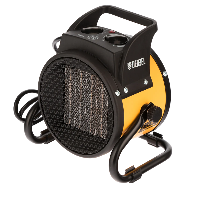 Тепловая пушка (тепловентилятор) Denzel DHC 2-100 с керамическим нагревателем потребляет мощность 0,025, 1 или 2 кВт и пригодится в любую погоду: в холод она обогреет помещение, а в жару ее можно использовать как вентилятор. Также применяется во время отделочных работ для просушки поверхностей — окрашенных и оштукатуренных стен, стяжек. Максимальной мощности 2 кВт хватит для обогрева помещения площадью до 20 кв.м. Работа тепловой пушки не доставляет дискомфорт, безопасна для здоровья людей и животных, поскольку керамический нагревательный элемент не сушит воздух и не выделяет вредных веществ.