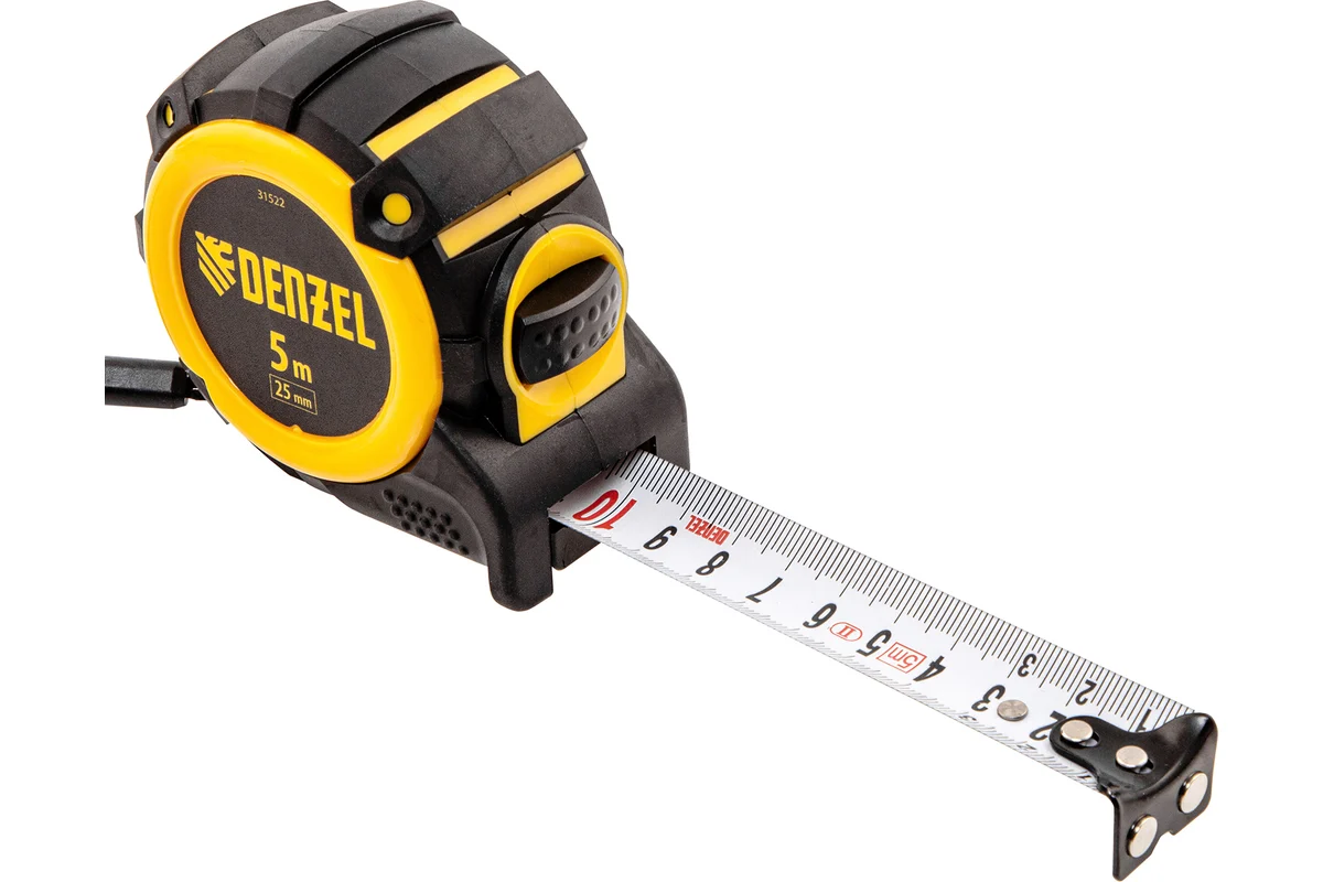 Рулетка Denzel 31522 с автоматической фиксацией полотна размером 5 м х 25 мм, с нейлоновым покрытием, магнитным зацепом и двухсторонней разметкой, предназначена для измерения расстояний и определения габаритов различных предметов. Лента автоматически фиксируется в вытянутом положении, что упрощает работу. Рулетка удобна для работы в труднодоступных местах, будет полезна во время строительных и ремонтных работ.