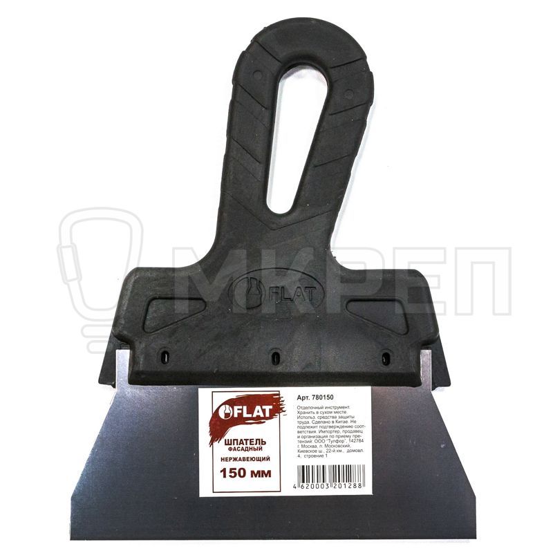 Шпатель фасадный плоский FLAT применяется для нанесения и разравнивания шпатлевки, для заделки и формирования швов, а также для очистки поверхности от старых слоев краски.
