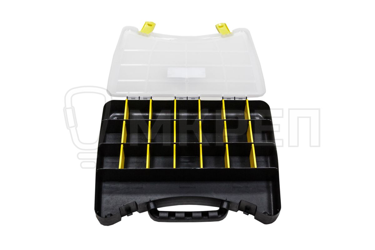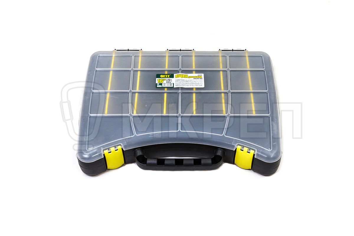 - Пластиковый ящик FIT выполнен в форме кейса, служит для хранения и переноски крепежных изделий.