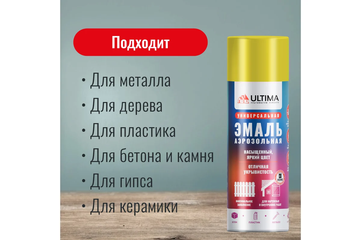 Аэрозольная акриловая краска ULTIMA в цвете RAL 1018 (желтый) предназначена для профессионального и бытового применения.