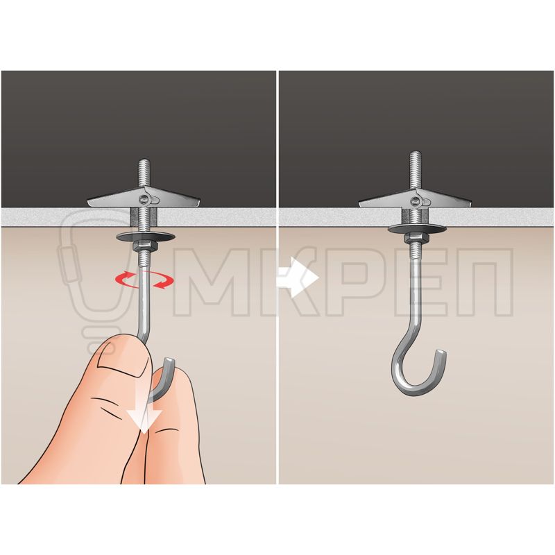 Анкер потолочный с крюком - складной пружинный дюбель для крепления в подвесных потолках.