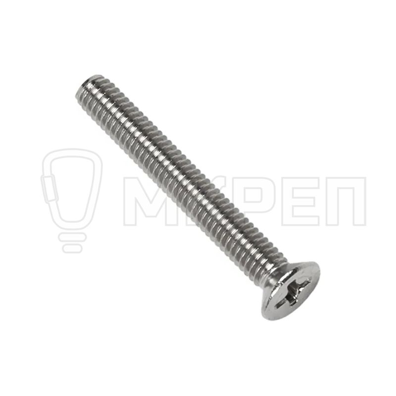 Винт с потайной головкой DIN 965 - один из самых часто используемых винтов. Используется в машиностроении, станкостроении, в мебельной промышленности и в быту. Винт имеет потайную головку, полную метрическую резьбу и крестообразный шлиц.