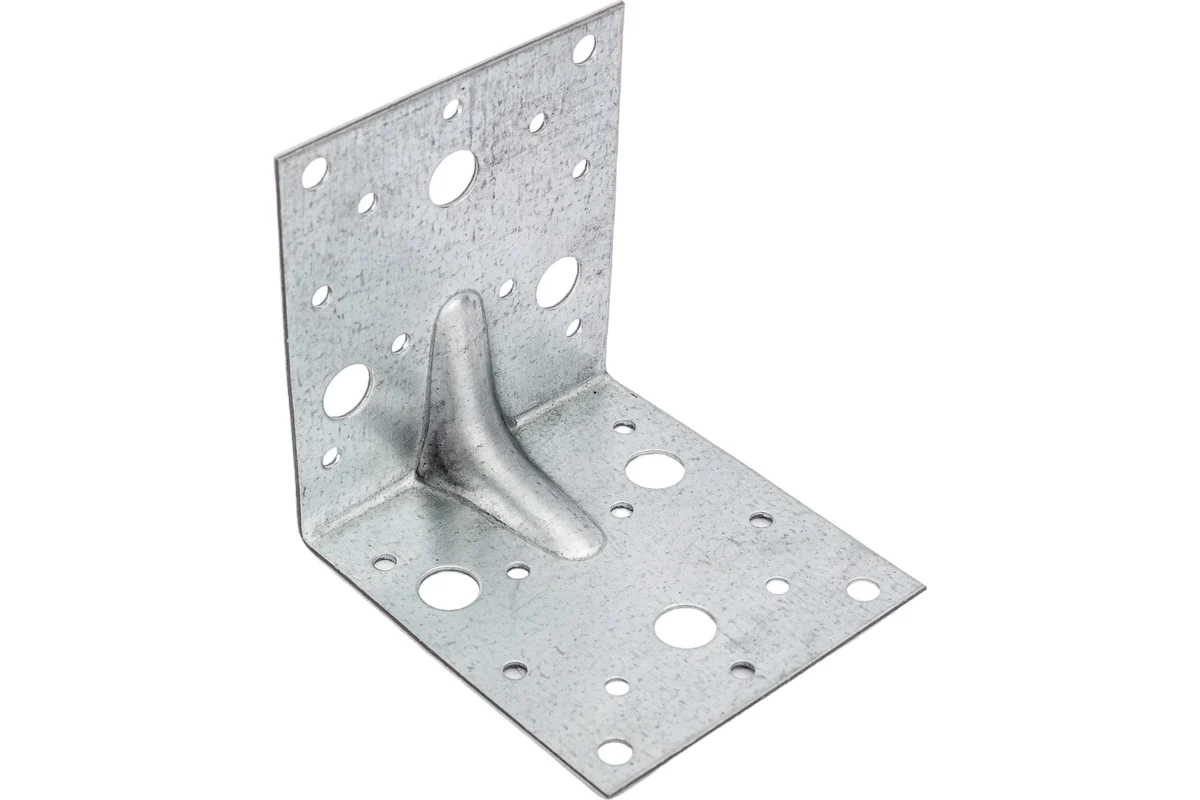 Усиленный уголок предназначен для соединения и фиксации элементов конструкции под углом 90 градусов. Ребро жесткости на сгибе позволяет использовать его при повышенных нагрузках. При установке не требуется врезка или применение специального оборудования.