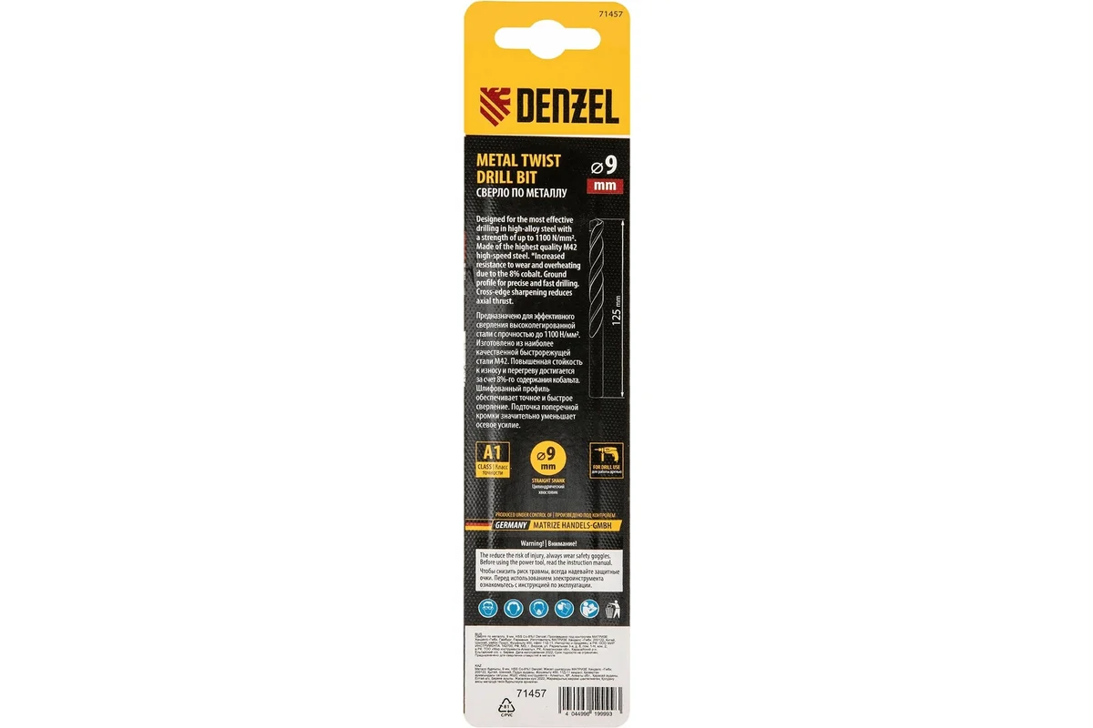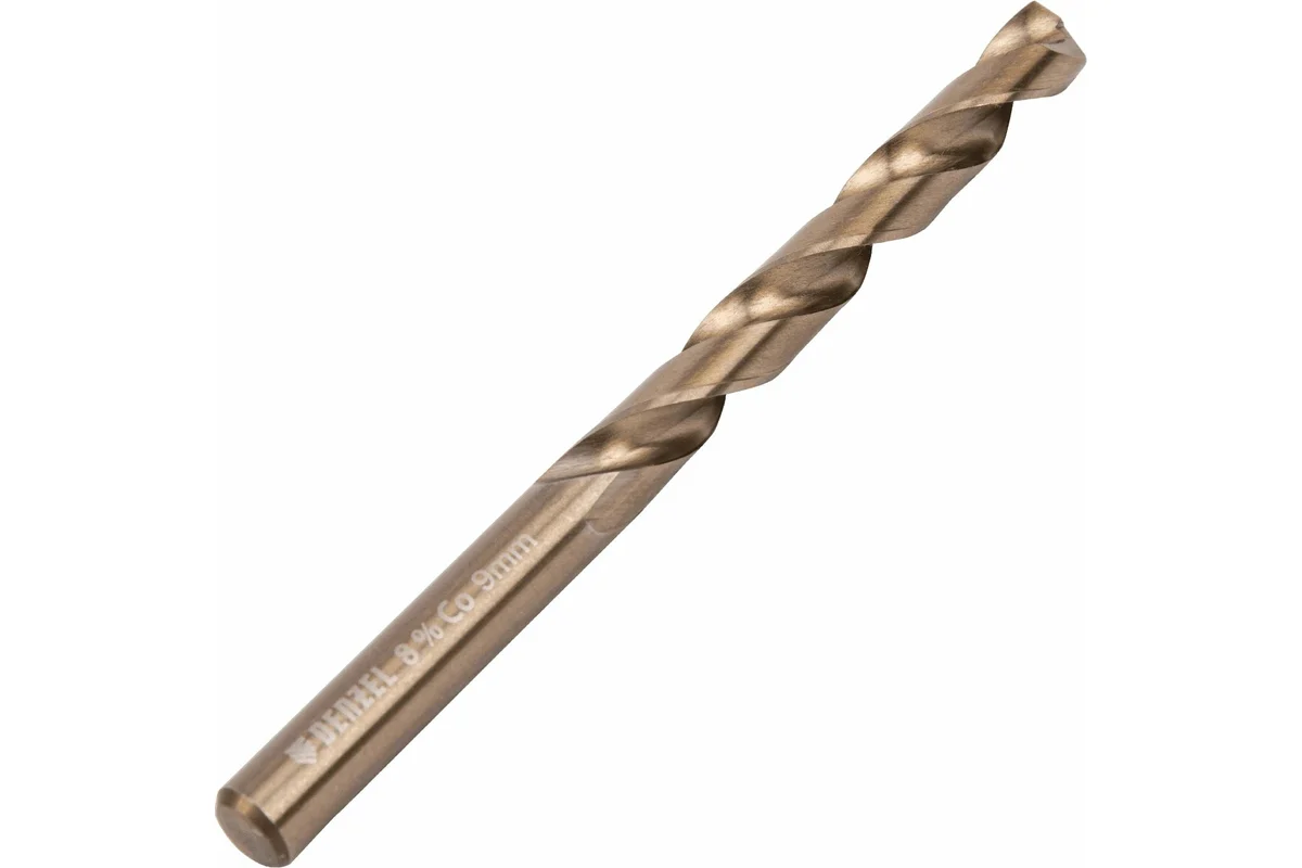 Кобальтовое сверло по металлу Denzel 71457 диаметром 9 мм, из стали HSS Co-8%, позволяет получать отверстия высокой точности в нержавеющей стали, цветных металлах, легированных и нелегированных сталях с пределом прочности до 1100 Н/мм2, а также в жестком пластике. Угол заточки 135° обеспечивает повышенную точность и чистоту сверления.