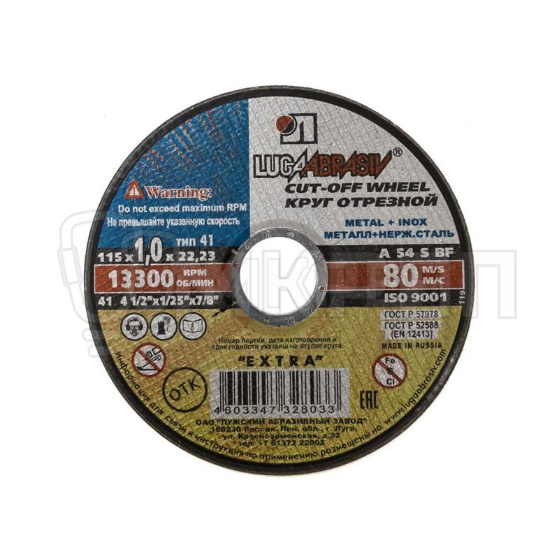—Круг отрезной по металлу, 115х1.0х22мм, Луга-Абразив