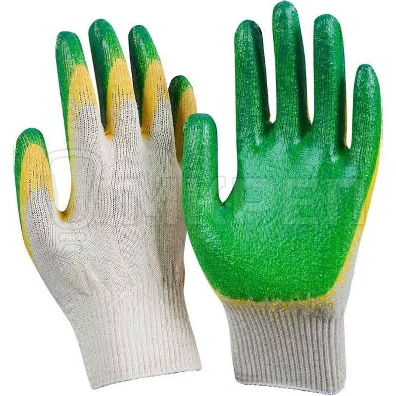 —Перчатки х/б с покрытием, зеленые с 2-ой обливной ладонью