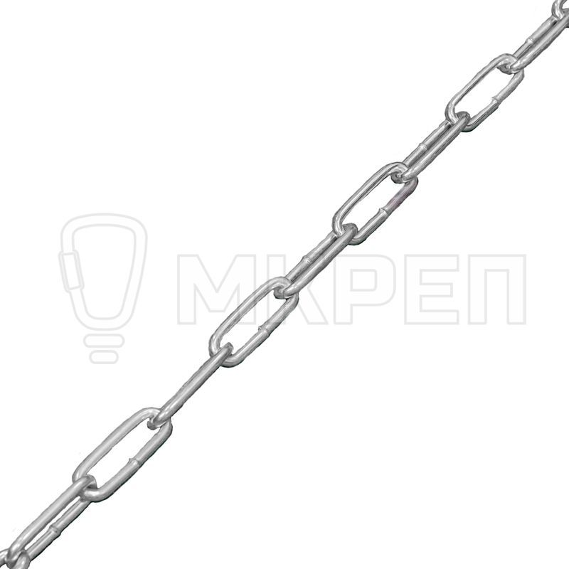 Цепь с длинным звеном 2 мм используется для различных монтажных и такелажных работ при установке подвесных конструкций, страховочных и натягивающих конструкций. Цепь не предназначена для грузоподъемных работ.