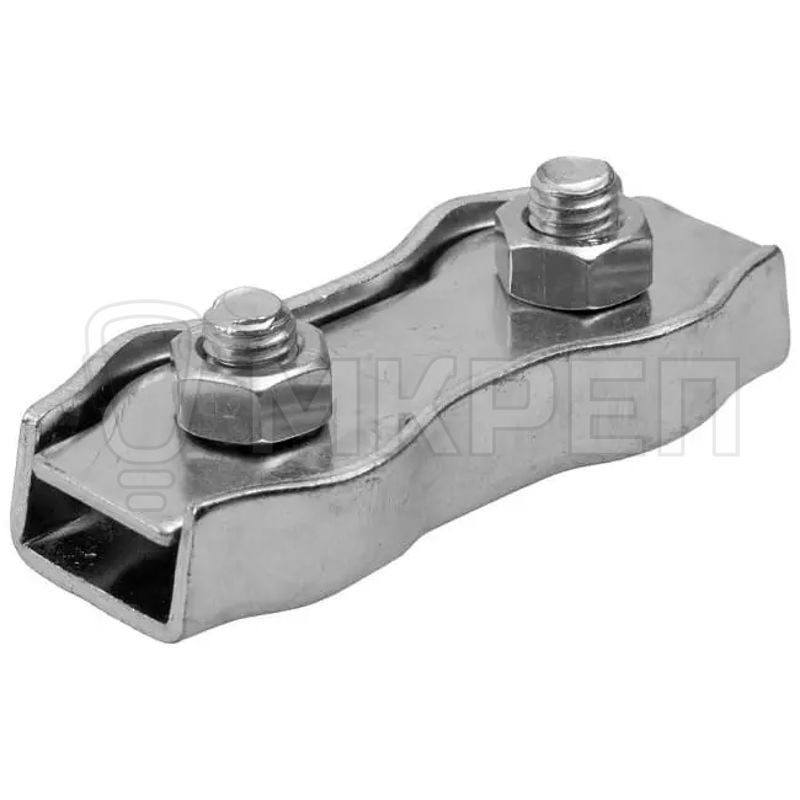 Зажим дуплекс состоит из прижимной пластины, основания, двух винтов и гаек. При закручивании гаек пластина прижимает трос к основанию.